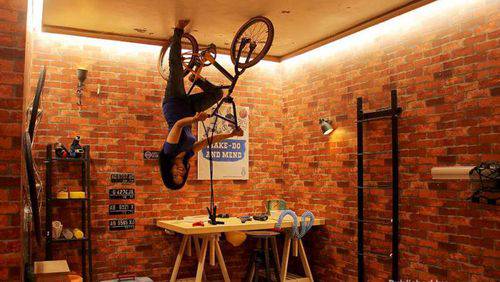 Naik sepeda di rumah terbalik (Robert Adolf Izak/d'Traveler)