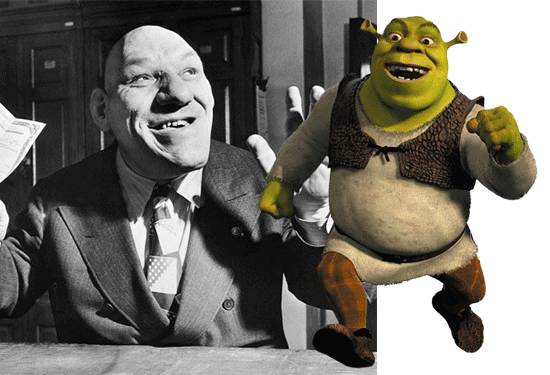 Karakter Fiksi Dari Dunia Nyata (13)Seorang pegulat bernama Maurice Tillet kabarnya merupakan tokoh hidup yang menginspirasi lahirnya karakter Shrek. Dilihat dari wajah dan cara senyumnya memang mirip sih ya.